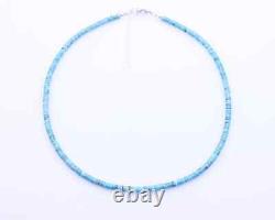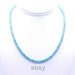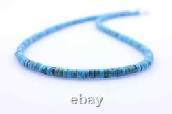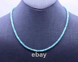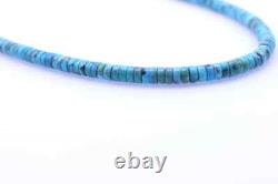 This beautifully handcrafted necklace features 4mm natural Kingman turquoise heishi beads, sourced from the legendary Kingman Turquoise Mine in Arizona, USA. The vibrant blue-green hues and fine polish of these gemstones make this necklace a timeless piece of Native American-inspired Southwestern jewelry. Designed as a delicate single strand, this necklace offers a streamlined, versatile style perfect for layering or wearing alone as a subtle statement. Its unisex design ensures it's a stylish choice for both men and women, blending modern minimalism with traditional charm. Bead Size: 4mm Kingman turquoise heishi beads.