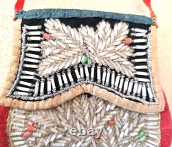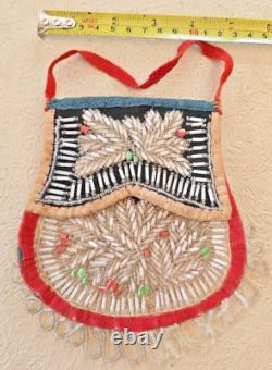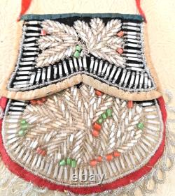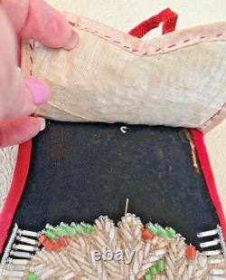 Antique Native American Iroquois Beaded Purse Pouch with Cloth Handle Excellent