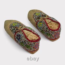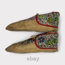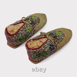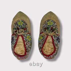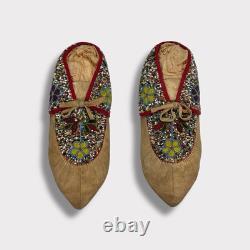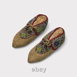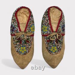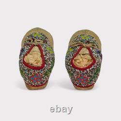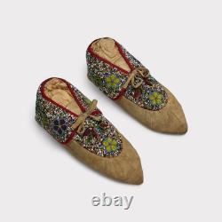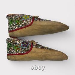 Antique Native American Woodland Floral Beaded Leather Moccasins Museum Grade