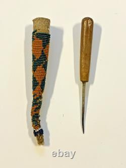 Antique Original Native American Indian Beaded Sheath & Awl Late 19th Century