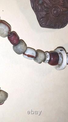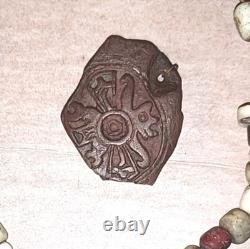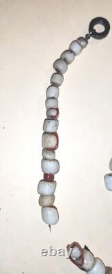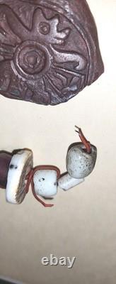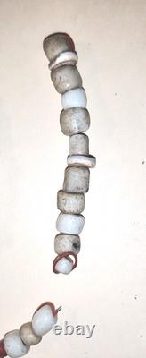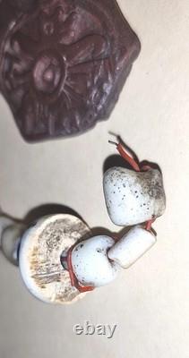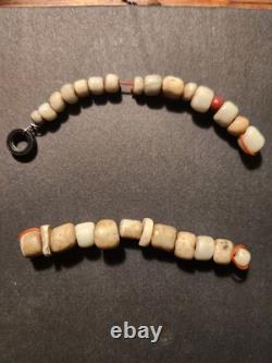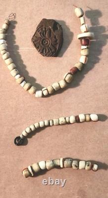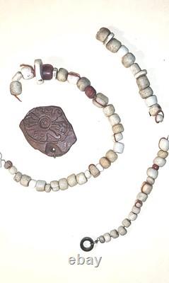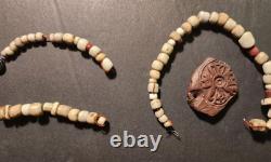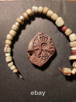 This authentic Native American beaded necklace and pendant, with 60 stones, is a stunning piece of pre-1600 artwork originating from near Snake mound in Chillicothe, OH. The tribal affiliation of the piece is Pawnee, and it was handmade in the United States. The intricate craftsmanship and cultural significance make it a valuable collectible for those interested in Native American artifacts and history.