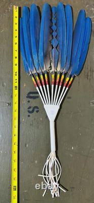 This beautiful beaded feather fan is a authentic piece of Native American artistry, crafted by Jorge Peña of the Lipan Apache tribe. The fan features intricate feather work in traditional Apache Payote patterns, with vibrant colors and intricate details that showcase the skilled craftsmanship of the artisan. This fan has never been in Ceremony and only needs bead work if desired.