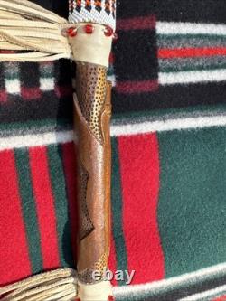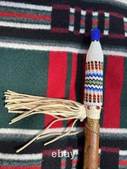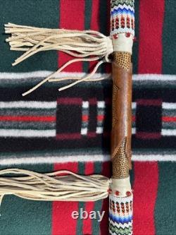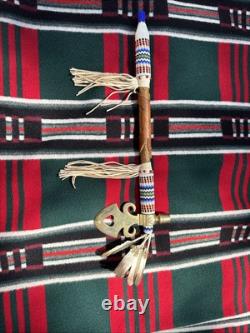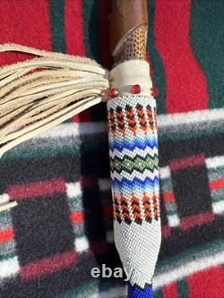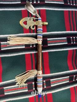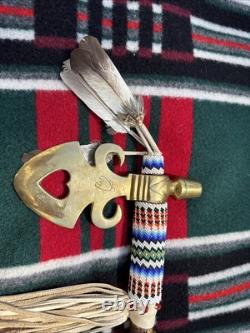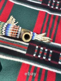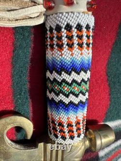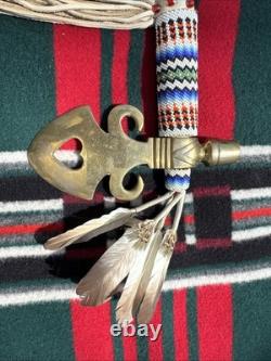 This is a beautiful and authentic example of a native American ceremonial pipe with axe. Incredible detailed beadwork and wood carving. A great addition to any collection.