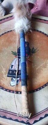 AWESOME TRADITIONAL DRUM BEATER CEREMONY NATIVE AMERICAN HANDMADE DRUM BEATER... ALL CUSTOM MADE TO ORDER.. PLEASE SEE PHOTOS FOR BETTER DETAILS AND DESCRIPTION.. MEASUREMENTS ARE IN THE PHOTOS..