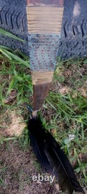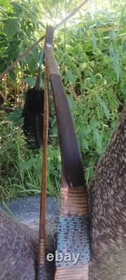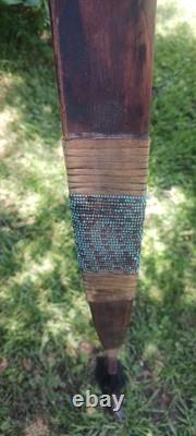 THIS IS ONE OF THE NICEST BOWS IVE LISTED.. AWESOME VINTAGE NATIVE AMERICAN BOW AND ONE ARROW SET WITH MATCHING ARROW COMPLETELY HANDMADE.. DOES HAVE MINOR EXPECTED AGE AND USAGE ISSUES. MEASUREMENTS OF THE BOW IS 52 INCHES LONG..