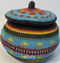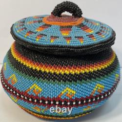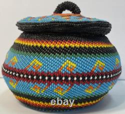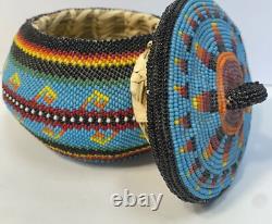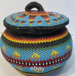 Contemporary 1980 or After Native American Washoe/Paiute Lidded Beaded Basket