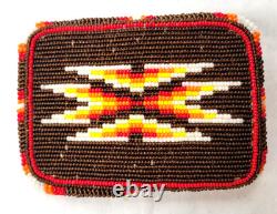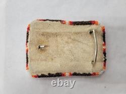 Native American beaded Belt Buckle brown red Geometric Regalia (PreOwned)