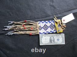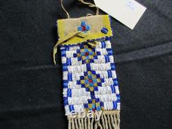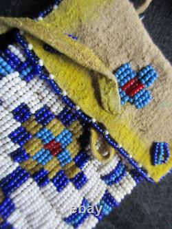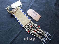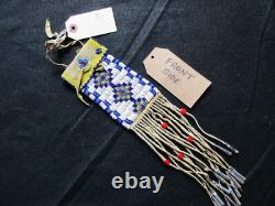 THESE PIECES ARE ALL ONE OF A KIND ITEMS. BAG with FRINGE: 3-1/4" X 13". PLUS ANY DANGLERS or STRAPS. BRAIN TANNED LEATHER, GLASS TRADE BEADS. NICE CONDITION FOR IT'S AGE, NO BEAD LOSS.