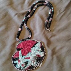 Native American Beaded pokemonMedallion Necklace Handmade Beadwork Leather Back