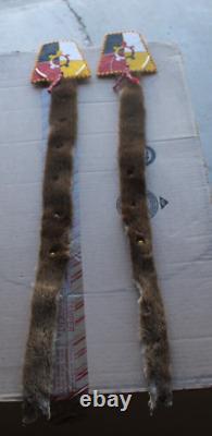 NATIVE AMERICAN BEADED POWWOW 33 MINK HAIR TIES. PLEASE CHECK OUT MY OTHER BEADED ITEMS. NO BEAD LOSS, IT IS MISSING ONE OF THE ACCENT TUBES AS SEEN IN THE 3RD PICTURE, GREAT OVERALL CONDITION.