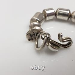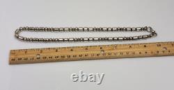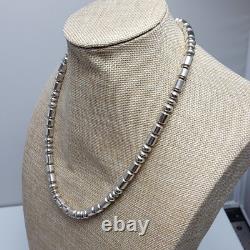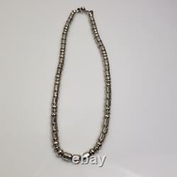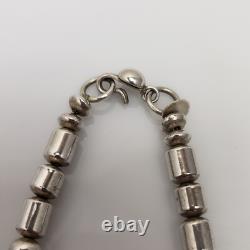 Native American Kewa Manuelita Judy Lovato Sterling Silver Beaded Necklace. 7.5 wide beads, various lengths 4mm to 9.5mm. Weight - 42.9 grams / 1.3 ozt.