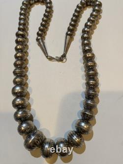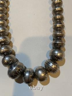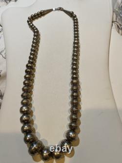 Enhance your jewelry collection with this exquisite Native American Sterling Bead Necklace. Crafted with intricate detailing, this beaded necklace showcases the rich cultural heritage of Native Americans. The necklace is made of high-quality sterling beads that add a touch of elegance to the necklace. The necklace is perfect for any occasion and complements any outfit. It is a great way to showcase your love for Native American culture and add a unique touch to your wardrobe. This necklace is a must-have for anyone who loves ethnic and regional style jewelry.