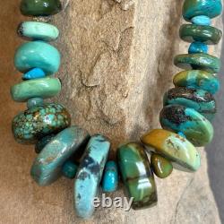 Native American Turquoise Bead With Sterling Silver Bead Necklace 18. With 2 Inch Sterling Silver Extender.