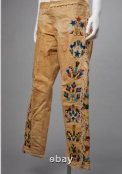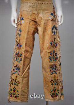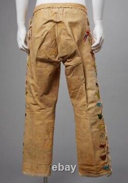 Native American Western Cowboy Indian Trousers Beaded Leather Fringes Pants