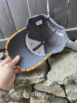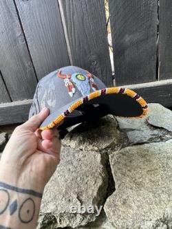 Peyote Beaded hat brim 4 rows of size 10 seed beads. Most sellers do a wrap stitch on their hats, this results in a loose beaded pattern that goes up the bill of the hat with many many rows of beads. These beaded hats look nice but the beads break off easily and come loose with wear. My hats are Peyote sewn. Each bead is sewn through twice!