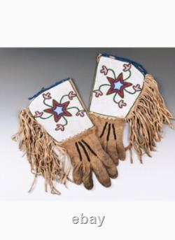 Old American Style Handmade Sioux Flora Beaded Leather Gauntlet Gloves G5