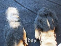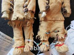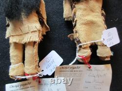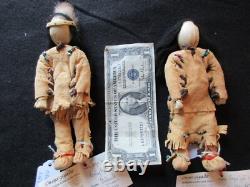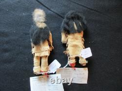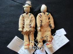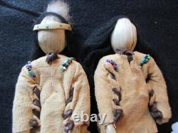 AUTHENTIC DESIGNED NATIVE AMERICAN BOY AND GIRL DOLLS. OF DOLLS FOR ONE PRICE. FANTASTIC OLD DESIGN AND ALL HAND MADE. WITH COA TAGS AND SIGNATURE. THIS IS A RARE, TRUELY A ONE OF A KIND PAIR. BOTH DOLL: 3" WIDE X 8" TALL. BRAIN TANNED LEATHER, VINTAGE TRADE BEADS. GOOD CONDITION FOR IT'S AGE, BEADS LOOK GOOD. WITH FINE DETAIL WORKMANSHIP & DESIGN. GREAT ITEM AND REALLY SPECIAL... PLEASE SEE ALL PHOTOS FOR. MORE DESCRIPTION, CONDITION & SIZE. GREAT ITEM AND REALLY SPECIAL..... COLLECTOR HAD A HUGE COLLECTION OF NATIVE AMERICAN ITEMS. MANY FINE BASKETS, KACHINAS, BEADED LEATHER ITEMS, STONE ITEMS, JEWERY, POTTERY, SHIELDS, DOLLS AND MUCH MORE. WHAT A GREAT ITEM TO ADD TO YOUR COLLECTION. OR TO RESELL OR TRADE WITH OTHER COLLECTORS! WOELTJE _ANTIQUES BUYS ENTIRE LARGE COLLECTIONS FROM THE HEIRS OF COLLECTOR'S ESTATES. ITEMS IN THE VARIOUS COLLECTIONS DATE FROM 10,000 B. C TO THE 1900'S. SOME ITEMS MAY HAVE COLLECTOR'S HAND WRITTEN NOTES, C.PAPERS, OAK DISPLAY CASES, GLASS CASES AND MANY DO NOT. WE RECENTLY OPENED ANOTHER CRATE OF ASSORTED ITEMS AND FOUND THE ITEM LISTED HERE. CHECK PHOTOS FOR DESCRIPTION AND CONDITION. ITEMS BEING DELIVERED TO ADDRESSES OUTSIDE THE UNITED STATES.