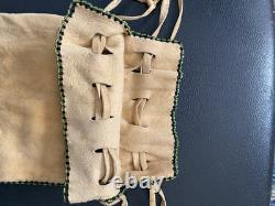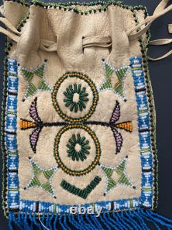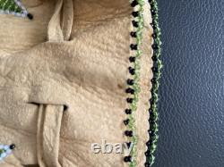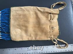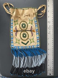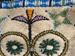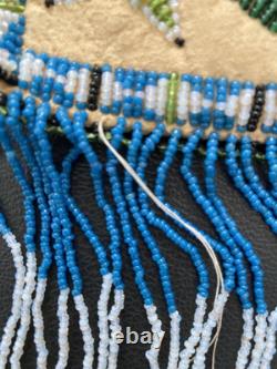 Likely made by Apache women to sell to the tourist trade in Fort Sill Oklahoma circa 1910. Please do your own research to verify! Few are as clean and beautiful as this one. There is one string of fringe with no beads on it.