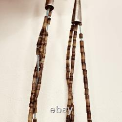 Beads : Assorted carved stone animal fetishes in mixed natural tones. Strands : 3 strands on brown cord. 20 on the shortest strand.
