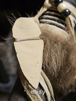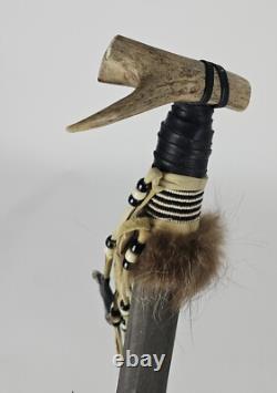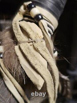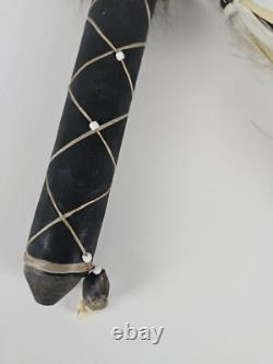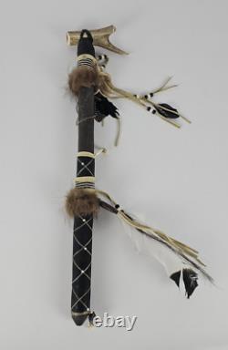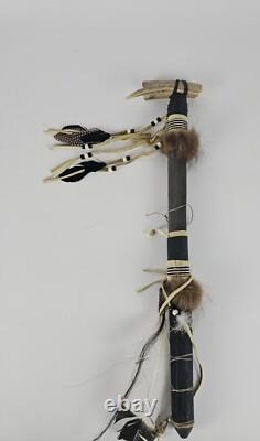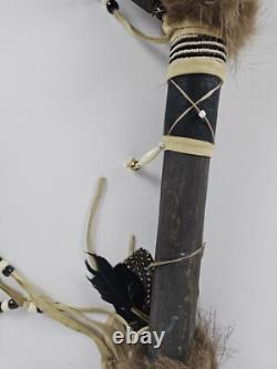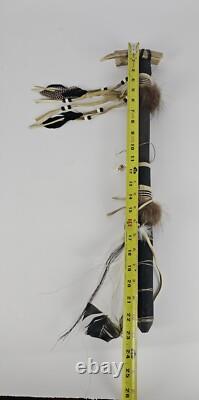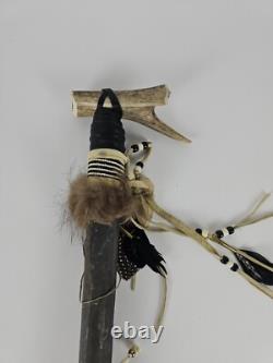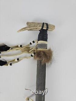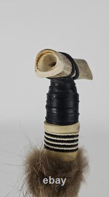 Vintage Native American Ceremonial Dance Medicine Stick Leather Antler Horn Bead