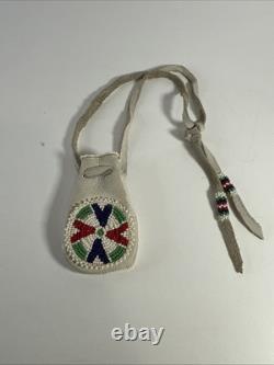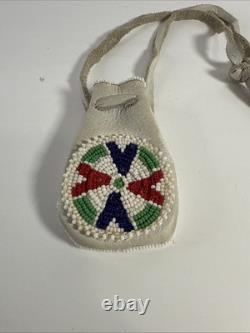 Vintage Native American Indian Leather Hide Beaded Medicine Tobacco Bag Pouch