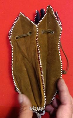 Vintage Native American Indian Style Bead Suede Pouch /Medicine Bag