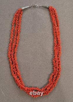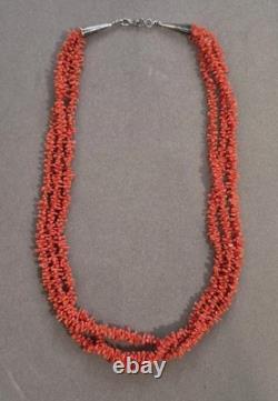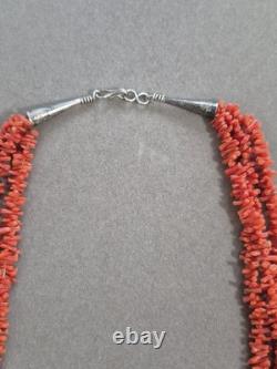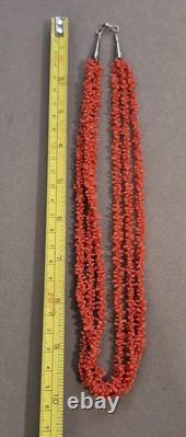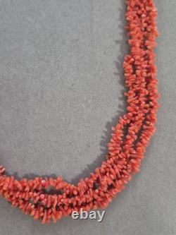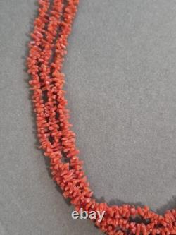 Vintage Native American Navajo rasing sun Red Coral triple strand necklace