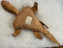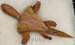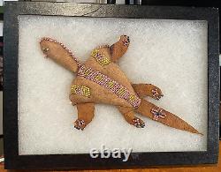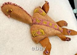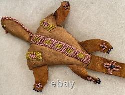 Vintage Very Old Antique Native American Sioux Lakota Beaded Amulet Ethnic Leather Lizard. Lizard 7 1/8" long x 4" wide.